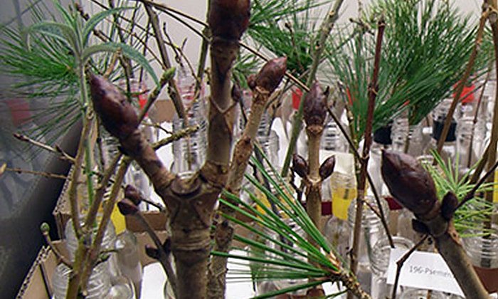 Für ihre Versuche verwendeten die Forscher etwa 30 Zentimeter lange Zweige 36 verschiedener Bäume und Sträucher, die sie Klimakammern unterschiedlichen Wärme- und Lichtbedingungen aussetzten. Die Klimakammer-Experimente dauerten jeweils sechs Wochen. Die Zweige stammen aus dem nahe Freising gelegenem Weltwald, in dem die Bayerischen Staatsforsten Baumbestände unterschiedlicher Klimaregionen angepflanzt haben.