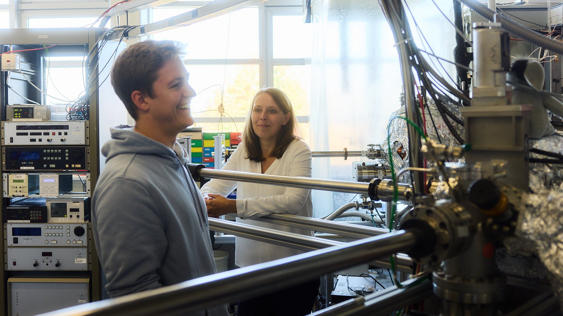 Gleichzeitig gewährt ihr das Gerät Einblicke in die elektronischen Eigenschaften – und zwar exakt an derselben Stelle. „So können wir Struktur und Eigenschaft auf der Nanoskala korrelieren. Das ist extrem wertvoll, weil wir die Auswirkungen makroskopisch sehen“, erklärt die Physikerin. „Wir stellen immer wieder fest, dass Nanoeffekte die Leistungsfähigkeit eines Materials positiv beeinflussen. Deswegen ist die Grundlagenforschung in diesem Bereich so wichtig.“ Idealerweise will Johanna Eichhorn die gewonnenen Erkenntnisse nutzen, um die Stabilität und Effizienz von Halbleitern für die solare Wasserspaltung und damit für die Wasserstoffproduktion zu verbessern.