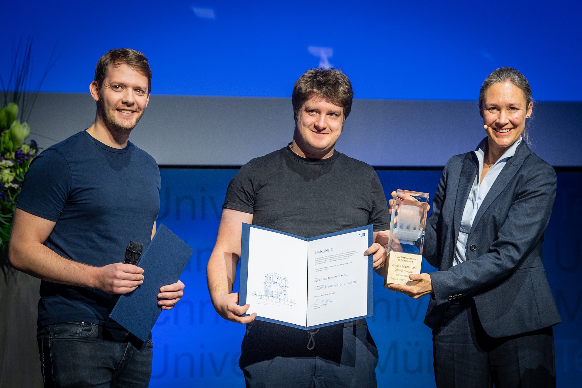 Als TUM Entrepreneurs of Excellence zeichnete die Geschäftsführende Vizepräsidentin der TUM Prof. Claudia Peus die TUM-Alumni und Gründer von Isar Aerospace, Daniel Metzler und Josef Fleischmann, aus. Ihr Unternehmen baut Trägerraketen, um als kommerzieller Anbieter kleine und mittlere Satelliten ins All zu befördern.