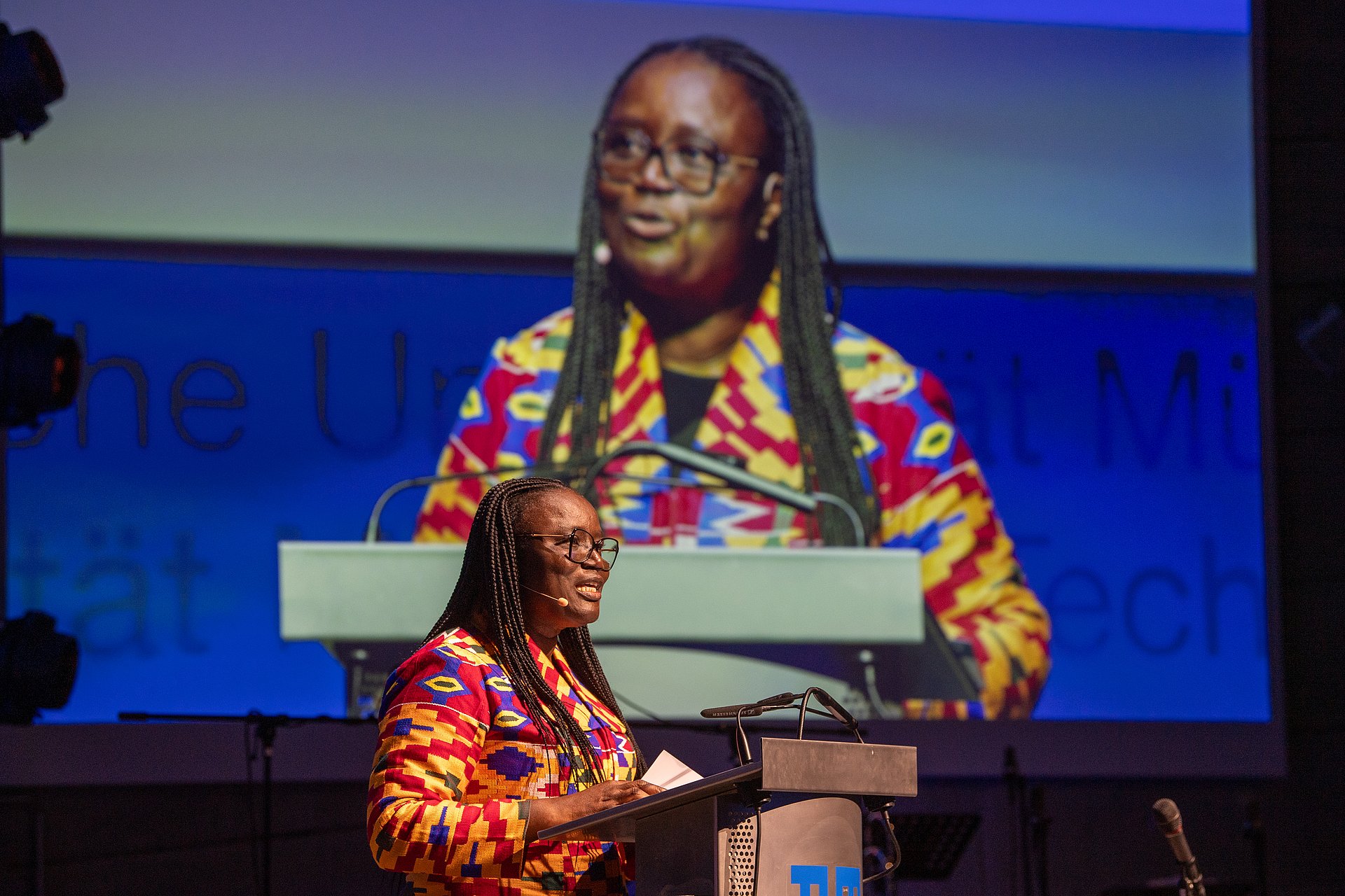 Im Rahmen ihrer neuen Global South Initiative baut die TUM ihre Beziehungen zu Forschungseinrichtungen in Südamerika, Asien und Afrika strategisch aus. Eine der wichtigsten Partner-Universitäten ist dabei die KNUST aus Ghana. Deren Vize-Kanzlerin Prof. Rita Dickson gab als Gastrednerin einen Einblick in ihre Perspektiven. Als Hauptaufgabe der Universitäten sieht Dickson, die Lebensqualität der Menschen zu verbessern und die nächste Generation von innovativen Führungskräften auszubilden. Diese müssten mutig, widerstandsfähig und kreativ sein, aber vor allem auch über emotionale Intelligenz verfügen.