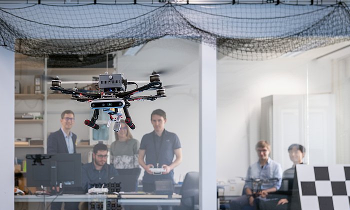 Eine Schlüsselqualifikation von Robotern ist, dass sie intelligent werden – also autonom entscheiden können. „Der Roboter erfordert einen physischen Körper und künstliche Intelligenz“, sagt Prof. Albu-Schaeffer, der von verkörperter Intelligenz spricht, engl. embodied intelligence. KI ist das Spezialgebiet von TUM-Professorin Angela Schoellig, die 2022 von der Universität Toronto zur TUM gewechselt ist. Ihre Aufgabe: Maschinelles Lernen in Roboter integrieren, damit sie komplexere Aufgaben erledigen können. „Komplexer vor allem als Roboter, die in einer vorprogrammierten Bewegung den gesamten Tag das Gleiche machen“, sagt Schoellig in Anspielung auf die Fertigung von großen Stückzahlen in Industrieumgebungen. Der ideale Roboter wird sich in komplexen Umgebungen bewegen und selbst die Planung übernehmen. Er braucht nicht von Hand programmiert zu werden, ist lern- und anpassungsfähig.