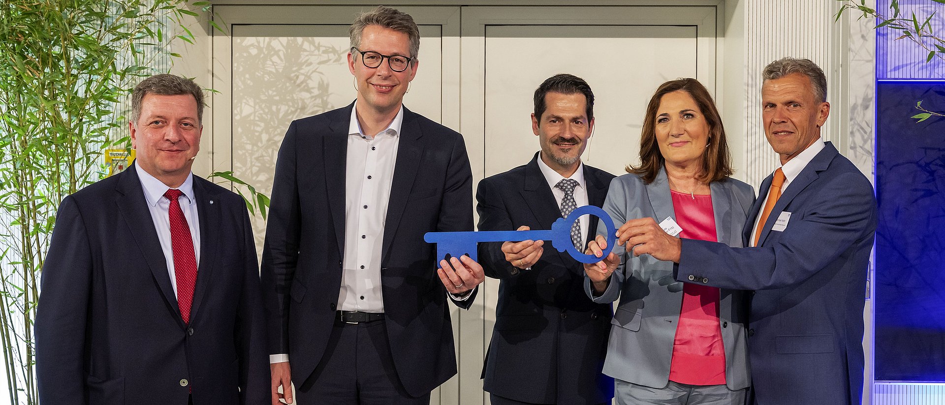 Im Rahmen eines offiziellen Festakts erfolgte nun die Schlüsselübergabe des Neubaus durch Bauminister Christian Bernreiter an Wissenschaftsminister Markus Blume sowie an TUM-Präsident Prof. Dr. Thomas F. Hofmann.