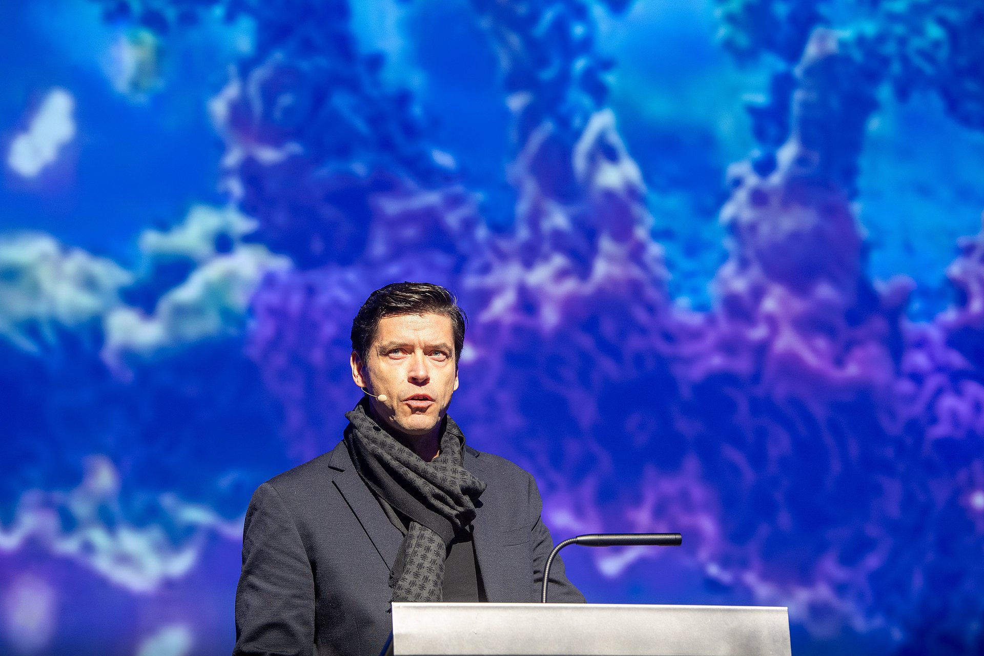 Prof. Henrik Dietz präsentierte seine Forschung in einem Vortrag über Bionanotechnologie. Sein Ziel sei es, programmierbare DNA-Moleküle zu erstellen und neue Wirkstoffe für Krankheiten zu entwickeln.