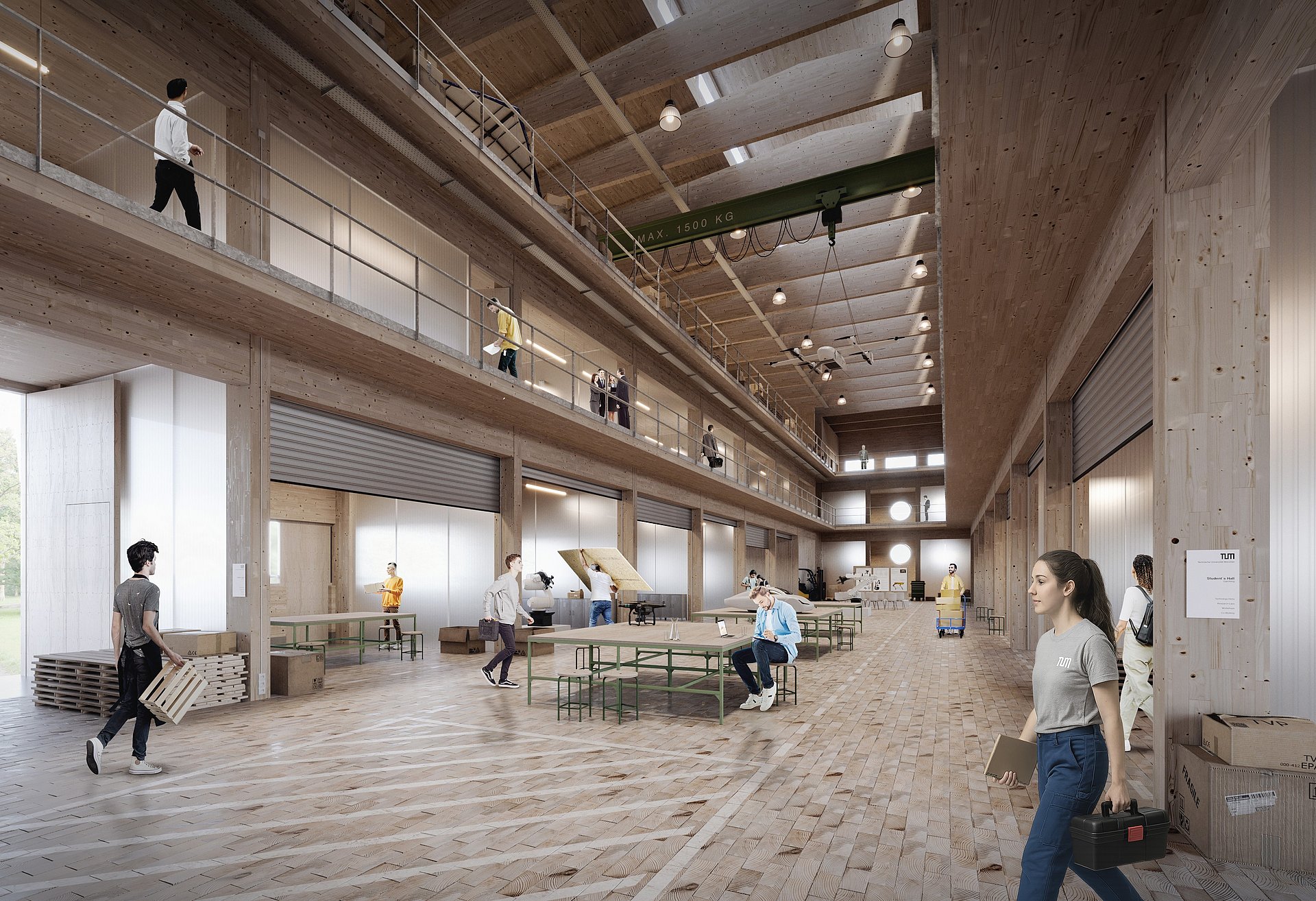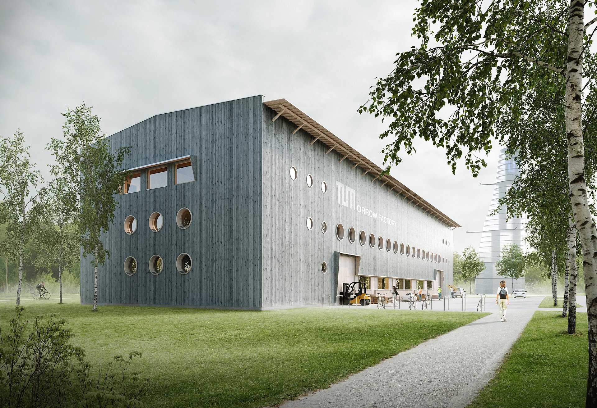 Das 60 Meter lange und knapp 20 Meter breite Gebäude wird überwiegend aus Holz gefertigt und wird den Nullenergiestandard erfüllen: Eine Photovoltaikanlage auf dem Dach erzeugt mehr Strom, als das Gebäude verbraucht. Architekt ist Prof. Florian Nagler vom TUM-Lehrstuhl für Entwerfen und Konstruieren.
