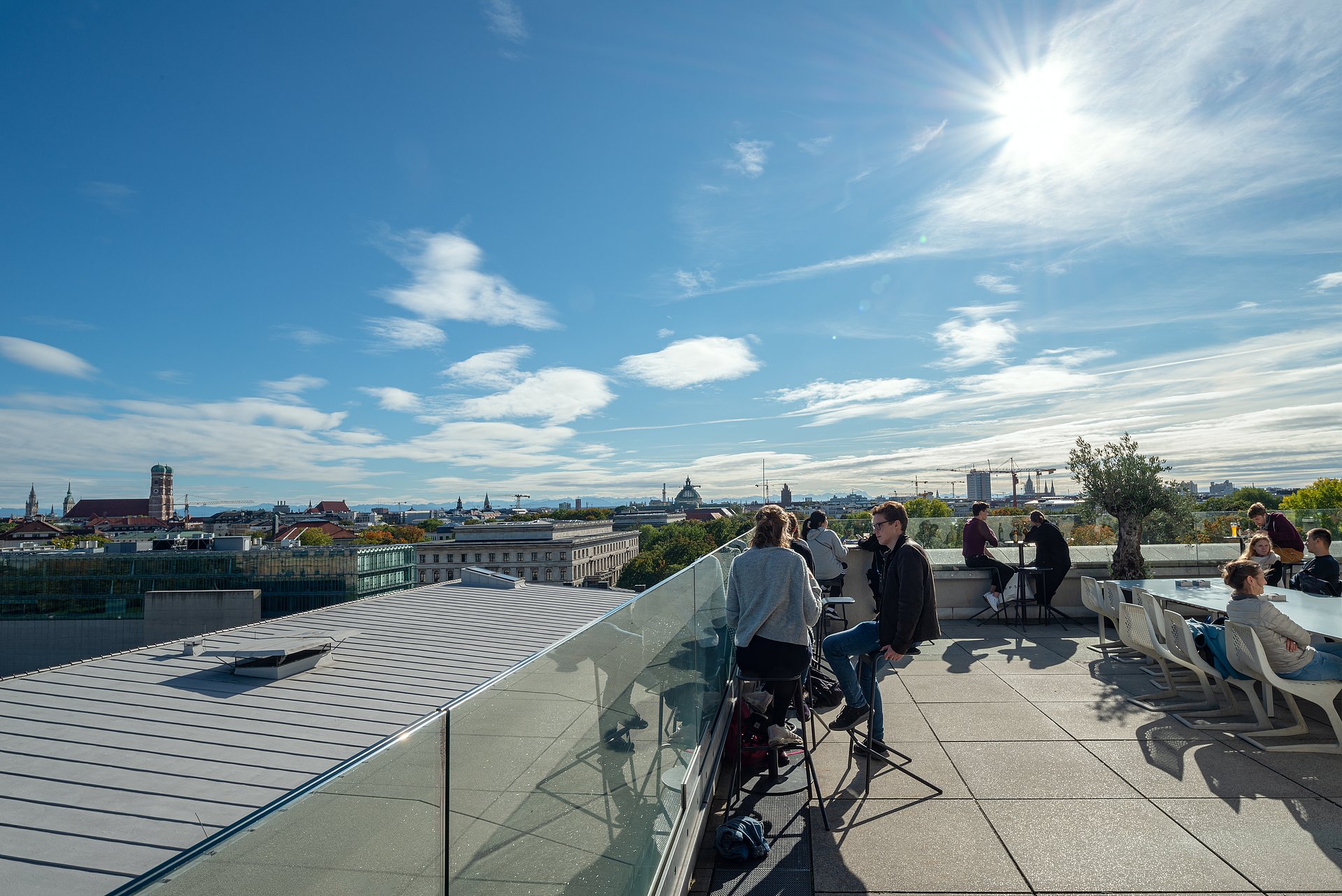 Die befristete Öffnung im Rahmen eines Pilotprojekts geht auf eine Initiative von Studierenden zurück, die auch die Organisation übernehmen. Sie bieten im Café und im südlichen Bereich der Dachterrasse nicht-alkoholische Getränke und Snacks an.