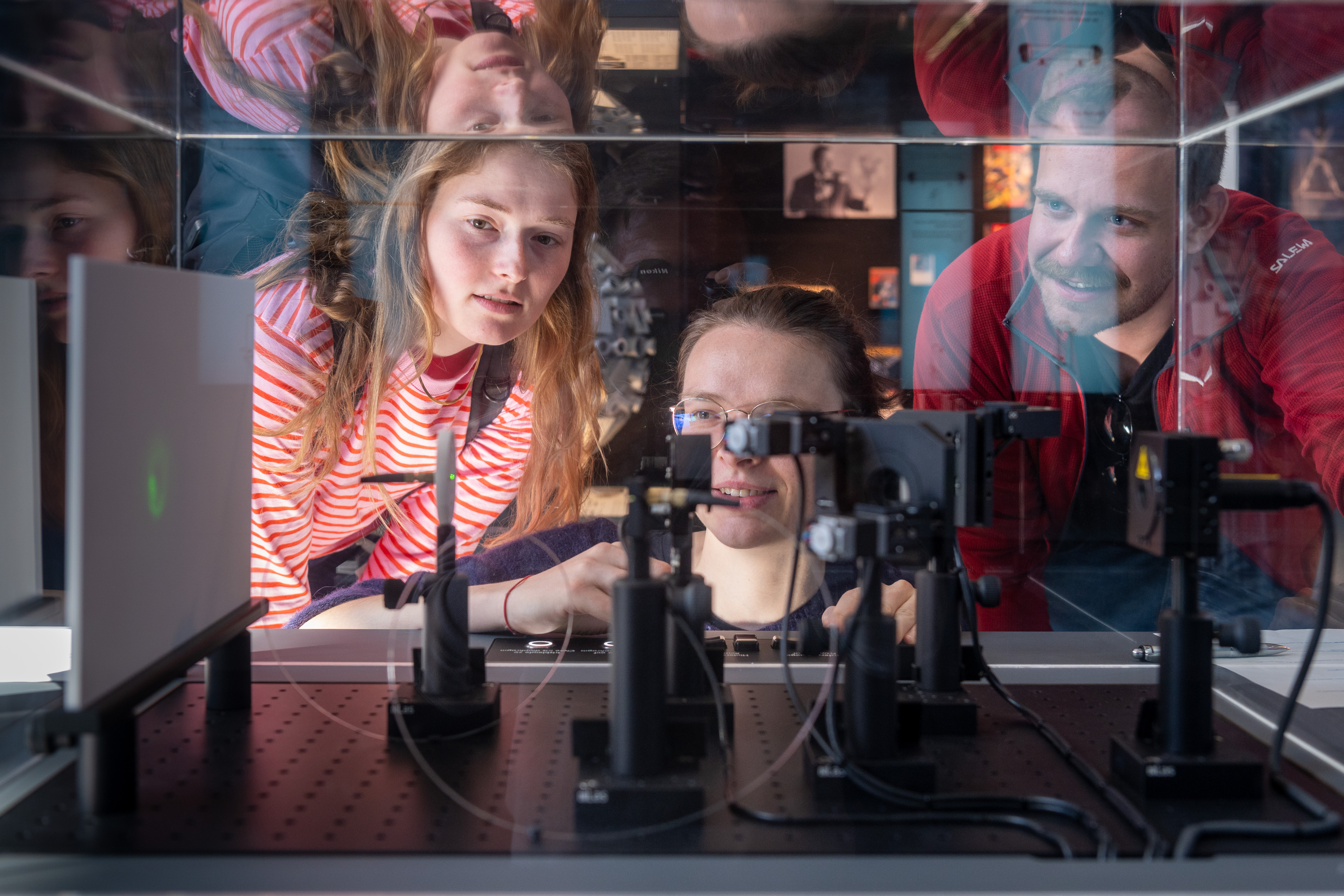 Genau dafür wurde die Sonderausstellung „Licht und Materie“ vom Munich Center for Quantum Science and Technology (MCQST) konzipiert, einem Exzellenzcluster, an dem neben der Ludwig-Maximilians-Universität München, der TUM und weiteren Forschungseinrichtungen auch das Deutsche Museum beteiligt ist. Die Ausstellung zeigt Geschichte und Grundlagen der Quantenphysik des 20. Jahrhunderts und bereichert diese immer wieder mit persönlichen Geschichten. Zum Beispiel der von Dr. Alice Golsen. Ihr gelang 1923 als Erste die exakte Messung der physikalischen Größe des Strahlungsdrucks. Dennoch versagte man der Lehrerin zu Lebzeiten die ihr gebührende Anerkennung als Forscherin. Golsen musste während der Zeit des Nationalsozialismus aus Deutschland fliehen und nahm sich im Exil das Leben. Ein Setzkasten mit liebevoll gestalteten Miniaturen erzählt diese bewegende Geschichte und zeigt auf Knopfdruck auch den Versuchsaufbau ihres bahnbrechenden Experiments.