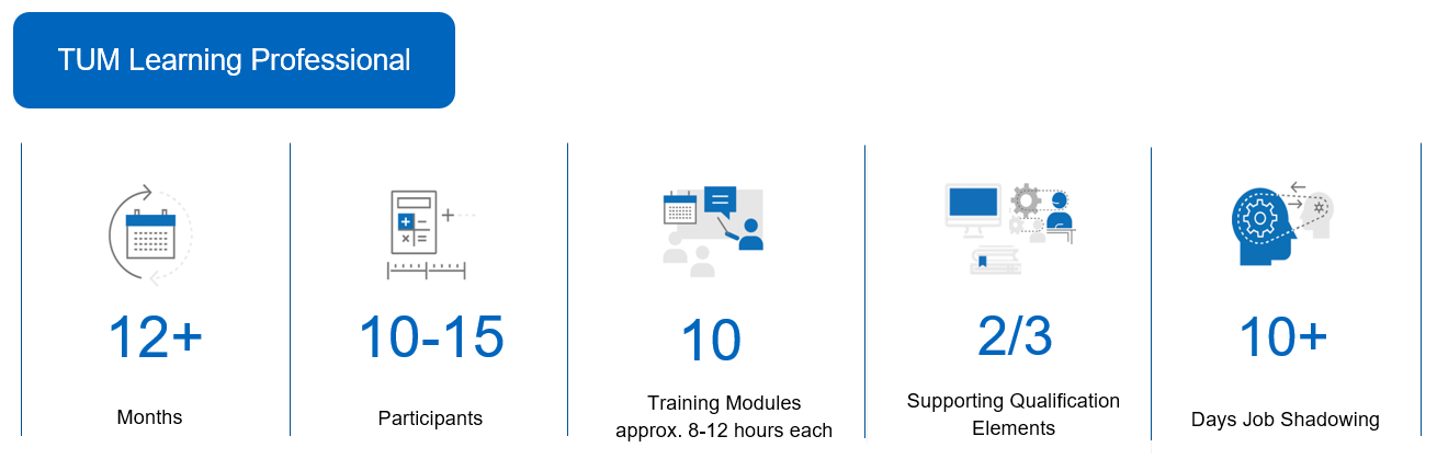 The following elements are part of the TUM Learning Professional qualification program: