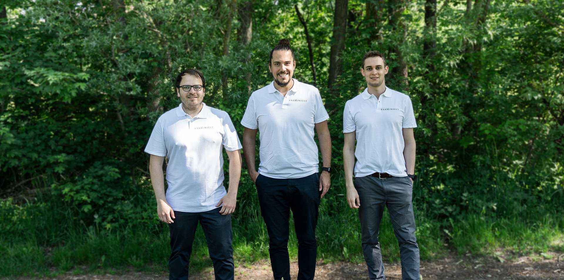 The founders of FarmInsect (Wolfgang Westermeier, Thomas Kühn, and Andre Klöckner) have developed their company based on the principle of using agricultural biomass in a circular economy. Accordingly, residues that accumulate in the region, such as harvest or peeling residues from an agricultural operation or residues from the regional food industry, such as spent grain or bread, can be used to fatten and feed insect larvae, which can in turn be used as feed for livestock animals.