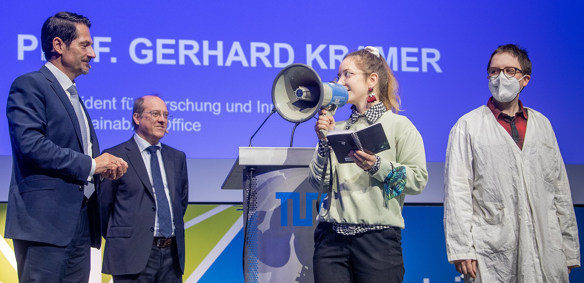 In this perspective Hofmann was in complete agreement with a group of Munich students who took to the stage during the event to unveil a poster calling for better climate protection. One student called out, "We're looking forward to your actions!" The university president assured her: "We share your convictions! We're on the side of the younger generation, and we want to shape the transformation together with you."