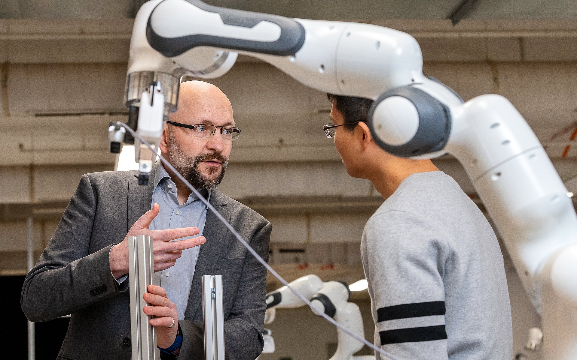 I deal primarily with three topics: the sense of smell of robots in the context of the environment and sustainability, mobile robots and how they can safely and efficiently navigate, especially in industrial environments, and how artificial intelligence can build on existing domain knowledge instead of having to learn things over and over again.