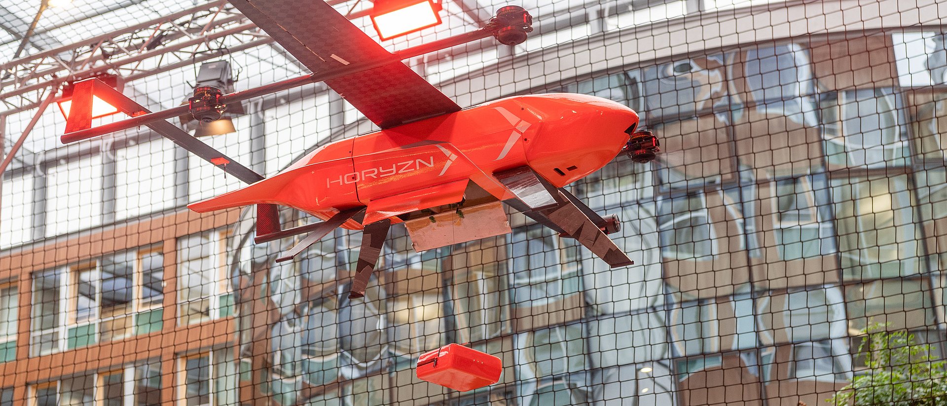 The fixed-wing drone – nearly 2 meters long with a wingspan of 3 meters – can reach areas that are difficult or even impossible to access with an ambulance. As soon as the aircraft reaches the coordinates received via emergency call, it goes into hover mode and lowers the defibrillator with a winch to the ground, where it can be easily deployed by first-aiders, including non-professionals, at the scene. This rapid deployment considerably increases the survival chances of the heart-attack patient.