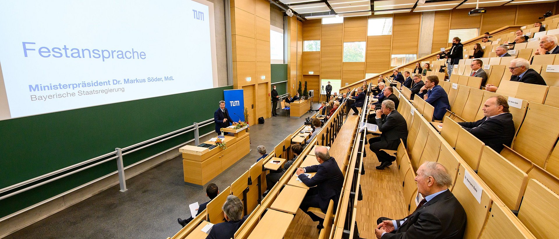 Minister-President Söder, Bavarian Minister of Science and the Arts Bernd Sibler, Bavarian State Minister for Housing, Construction and Transport Kerstin Schreyer, Bavarian State Parliament Budget Committee Chairman Josef Zellmeier and Straubing's mayor Markus Pannermayr were all joined by TUM President emeritus Prof. Wolfgang A. Herrmann at the opening ceremonies. Herrmann was a moving force in founding of the Straubing campus.