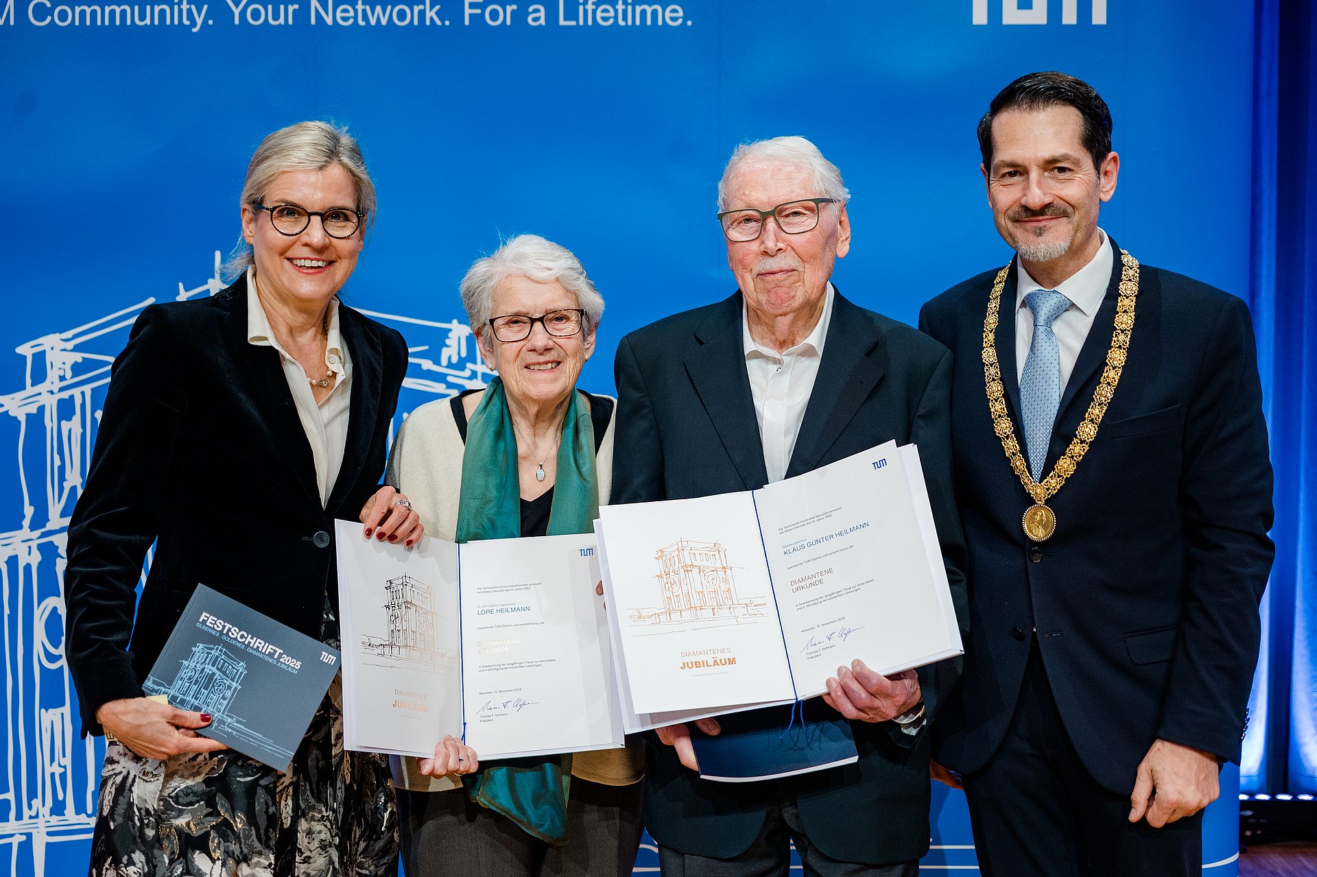 Equally impressive are the careers of the Golden and Diamond Jubilarians, who can already look back on several decades of professional and social influence. Many of the Jubilarians have received multiple awards for their commitment to science, business, and society, including five alumni who have been awarded the Order of Merit of the Federal Republic of Germany – a sign of exceptional achievements and contributions to society. The jubilarians also included four TUM Emeriti of Excellence, who continue to shape the university today with their scientific excellence and tireless dedication.
