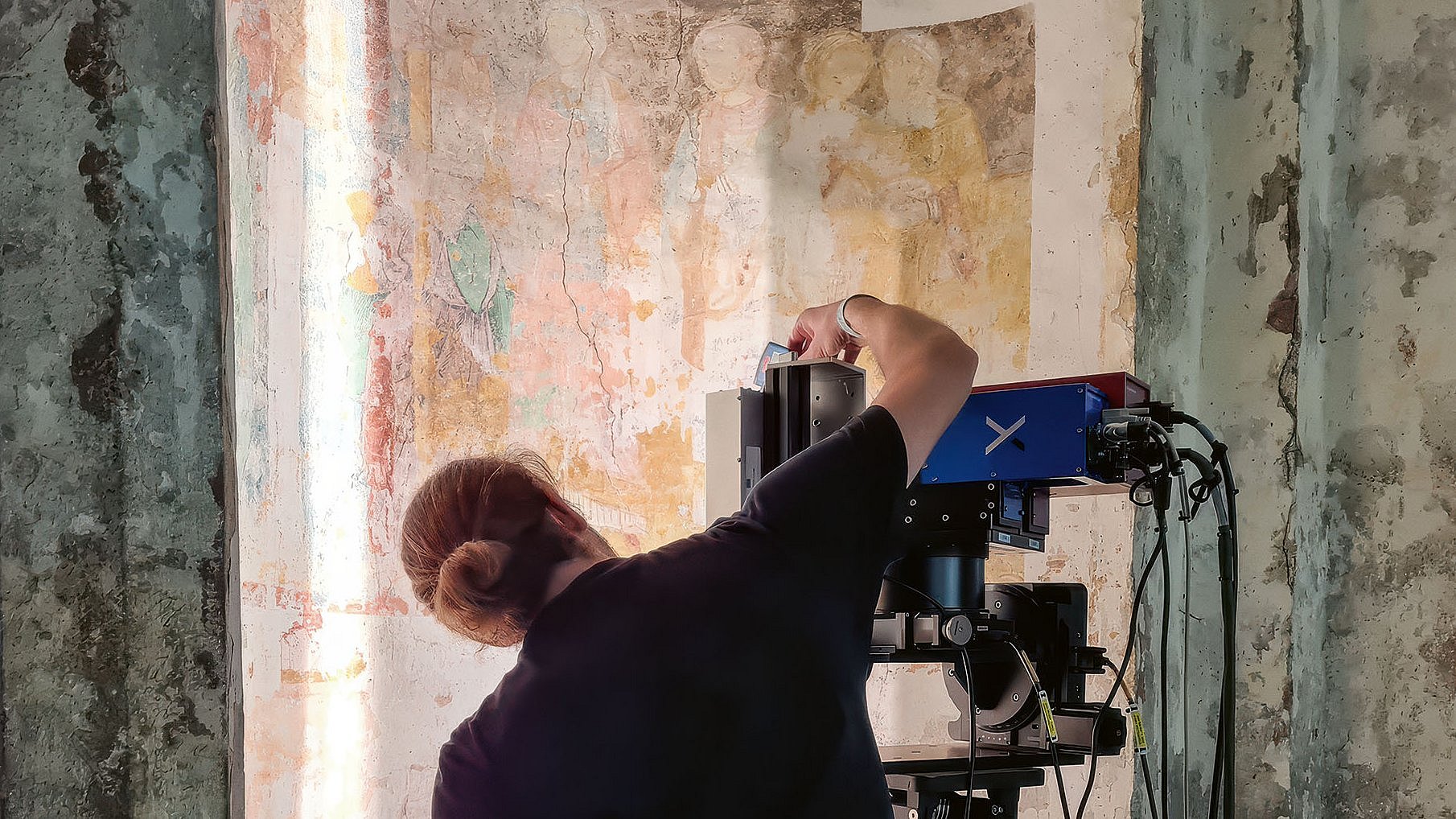 The wall paintings in the Magdalene Chapel of St. Emmeram in Regensburg were created in four phases spanning from the 12th to the 17th century. Due to an unfinished conservation and restoration project, sections of every layer are visible today. Researchers at TUM seized this unique opportunity: Using conservation and restoration findings and scientific methods, they were able to characterize the materials used and assign them to the respective painting phases—on site, without damaging the artwork.