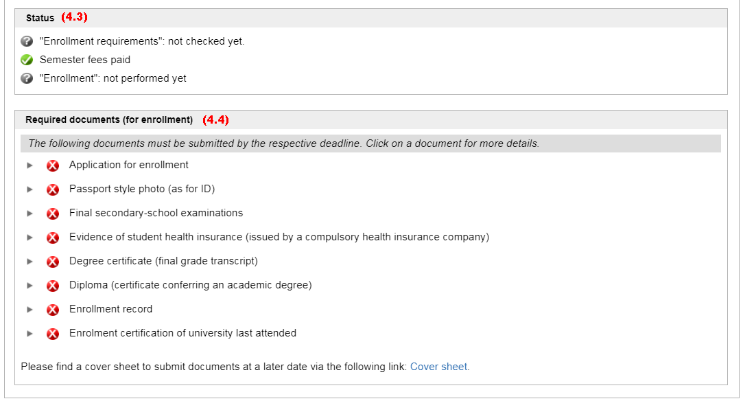Under Status (4.3), you can see if your semester fees have been received and if you are officially enrolled at the university.
