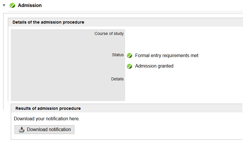 In order to be enrolled at TUM, you must first be granted admission to the program for which you have applied. You can find out whether you have been admitted in your TUMonline account under My Applications in the menu item Admission. In addition, you will receive an e-mail from us informing you about the admission as well as about further steps required for enrollment at TUM.