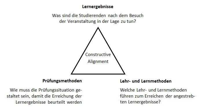 Formulating learning outcomes is an important tool for defining precisely and transparently what the intended outcome of a course is. However, in order to encourage students to learn in depth and acquire competencies, in the sense of Constructive Alignment, not only the content but above all the examinations must be aligned with the learning outcomes: this is the only way to ensure that students acquire the intended competencies. In order to design a course according to Constructive Alignment, after the definition of the learning outcomes, the forms of examination are first determined, in order to then align the structure and content of the course with the examination tasks. However, this procedure is not strictly linear: For example, the realization that certain learning outcomes cannot be tested in a meaningful way can lead to a change in the desired learning outcome.