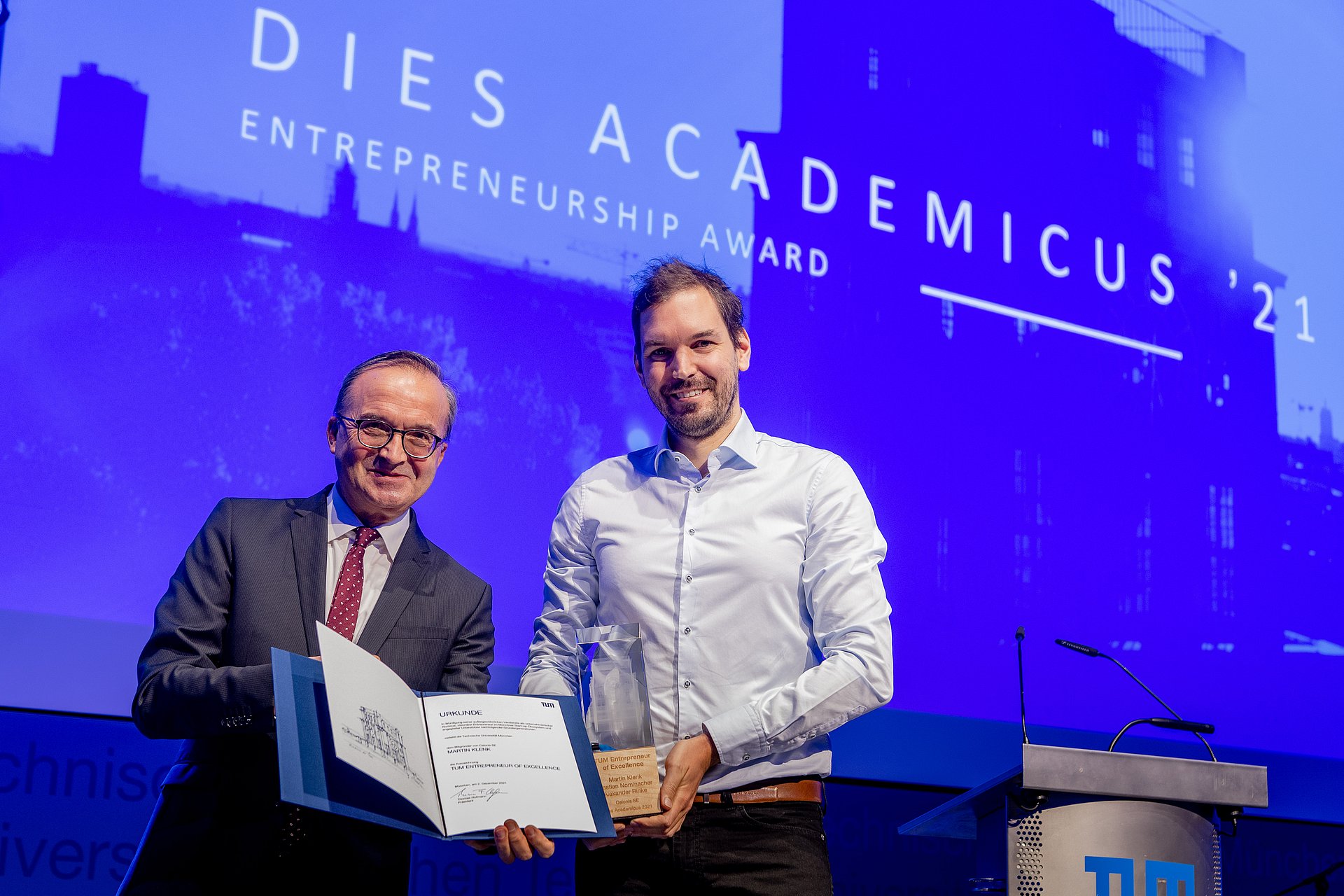 Als Zeichen der Wertschätzung erfolgreicher Gründerinnen und Gründer der Technische Universität München verleiht der Präsident Thomas F. Hofmann im Rahmen des Dies Academicus den Ehrentitel Entrepreneur of Excellence an eine herausragende Gründerpersönlichkeit der TUM, um bedeutende und engagierte Entrepreneure mit Vorbildfunktion auszuzeichnen. Mit der Verleihung des Titels beteiligt sich der Entrepreneur of Excellence an den Gründungsaktivitäten der Universität und steht mit seinem/ ihrem wertvollen Erfahrungsschatz nachkommenden Gründergenerationen zur Seite.