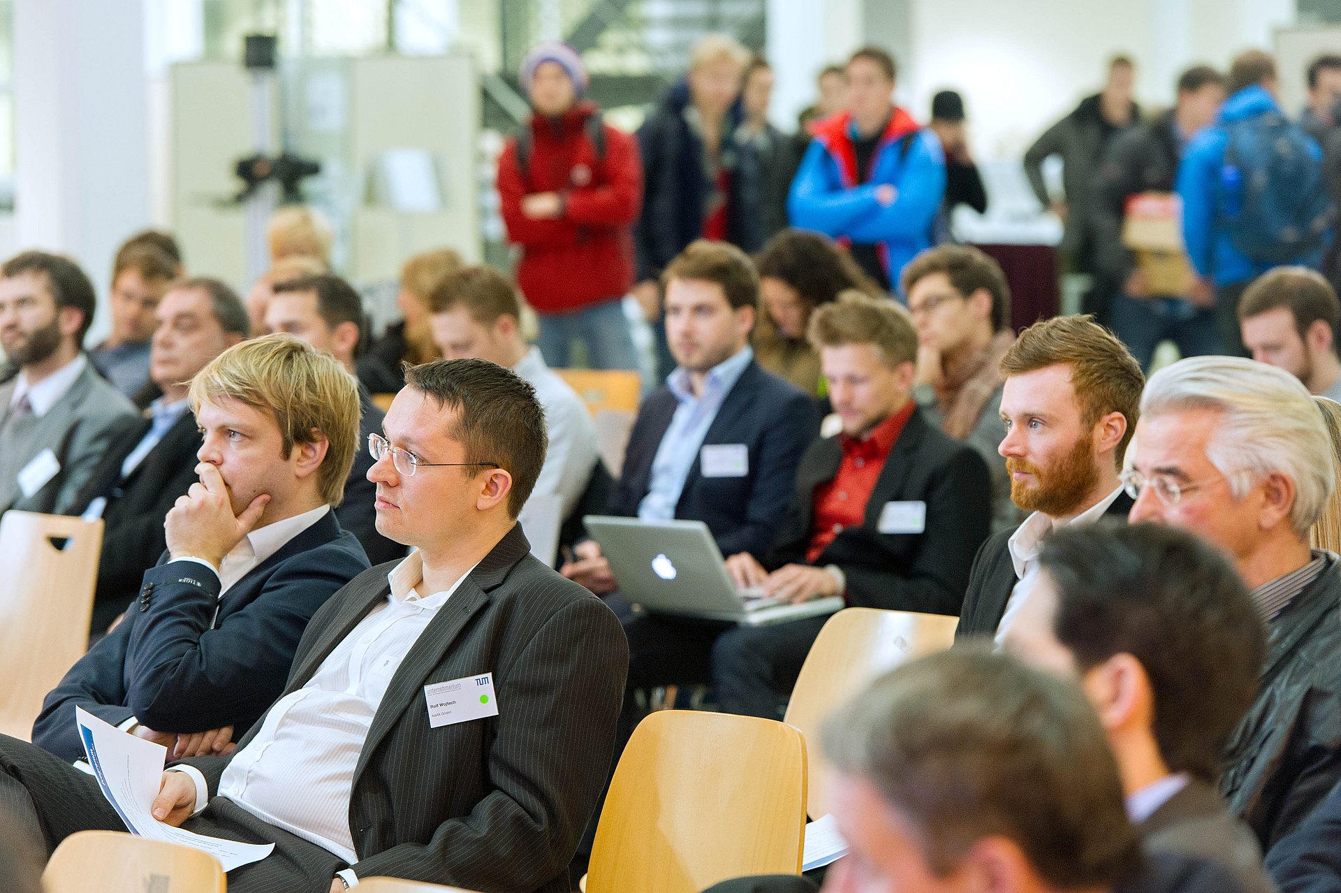 Am 20. November 2013 fand in der Magistrale der Fakultät für Maschinenwesen der erste TUM Entrepreneurship Day statt. Neben verschiedenen Workshops rund ums Thema „Gründen” hatten Besucherinnen und Besucher die Möglichkeit, sich über Angebote der TUM und UnternehmerTUM, sowie unserer Partner Evobis und CDTM, für gründungsinteressierte Wissenschaftlerinnen und Wissenschaftler zu informieren.