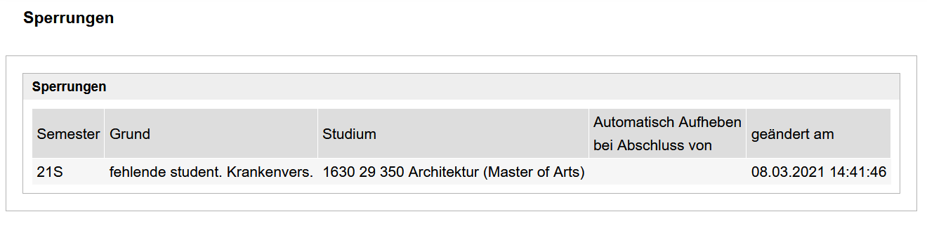 Erst wenn ein korrekter Nachweis eingereicht wurde (siehe unten) können die Sperre aufgehoben und das Studium fortgesetzt werden.